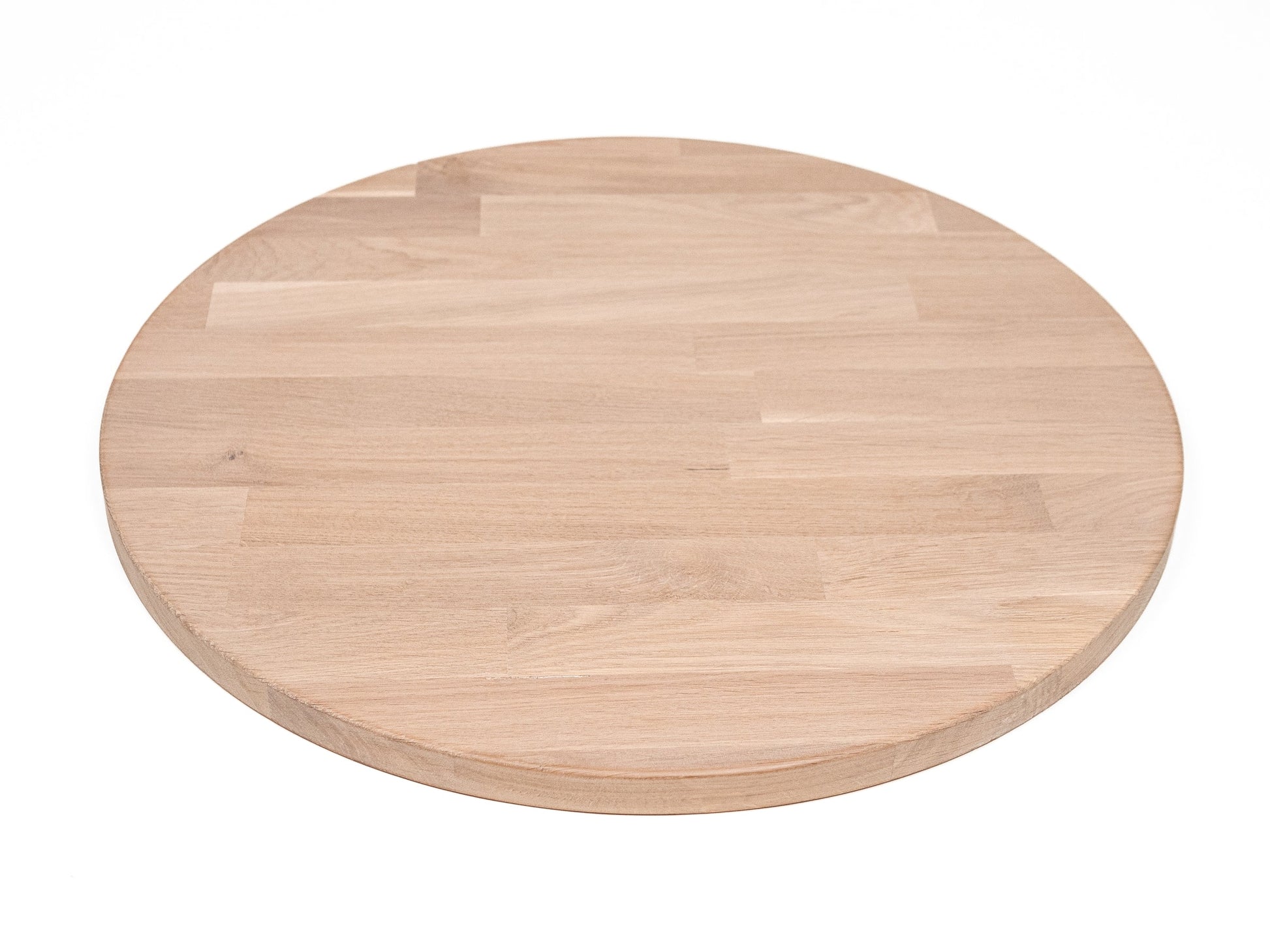 Okrągły blat roboczy z drewna dębowego A/B, lamele mikrowczep, 26 mm, olej biały kredowany