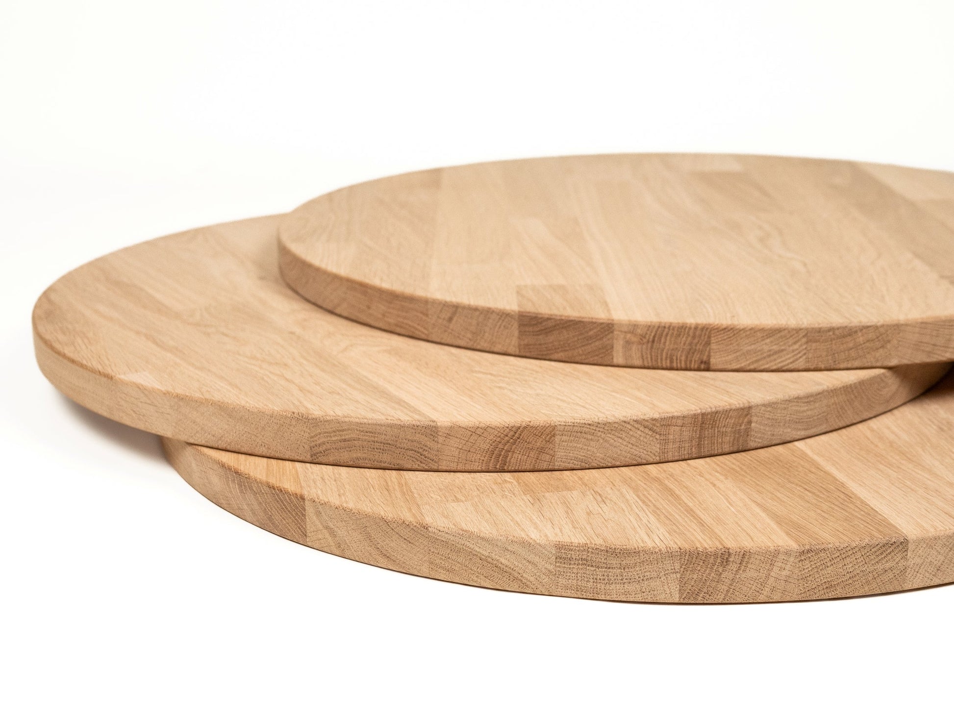 Okrągły blat dębowy A/B – lamele łączone na mikrowczep