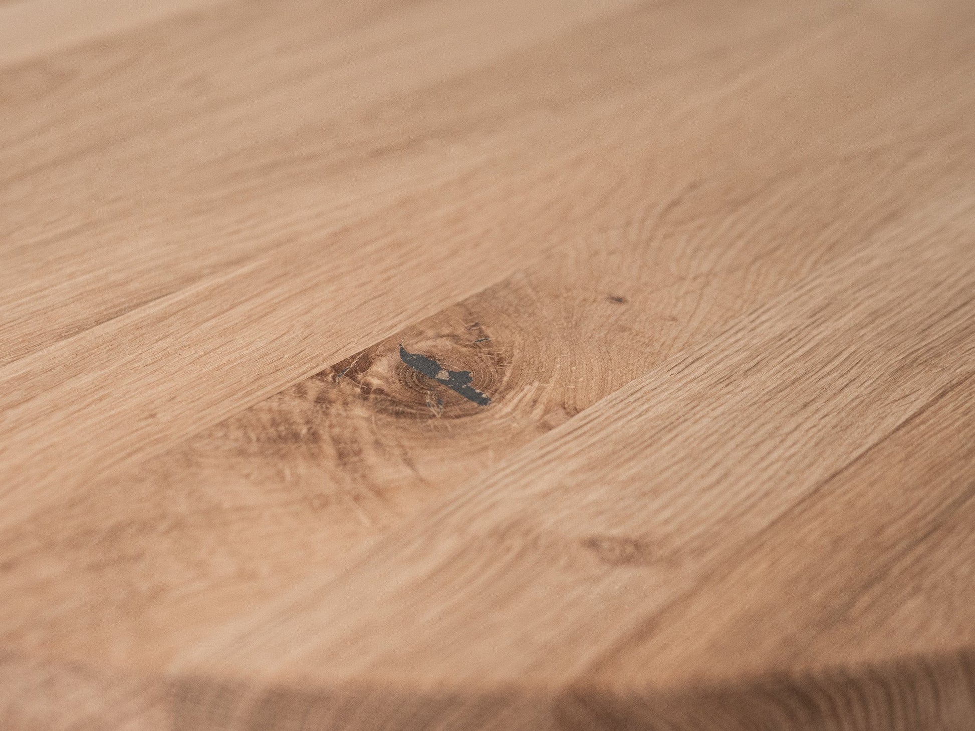 Okrągły blat dębowy – klasa rustykalna, lamele lite