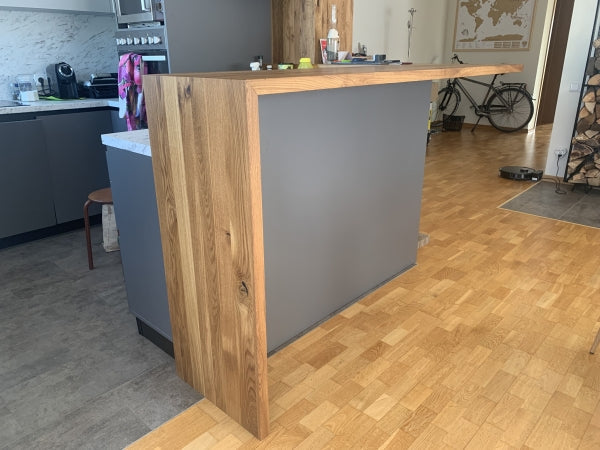 Rustikální dubový snídaňový pult s konektorem, lamely plné, 40 mm, šířka: 200 mm