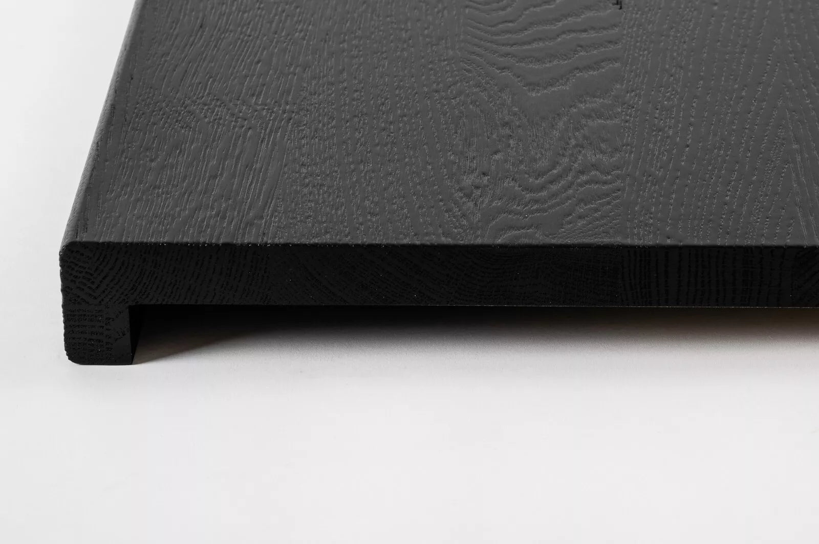 Schodnice Parapet s přesahem Dub A/B, průběžné lamely, 26 mm, kartáčovaný, Lak grafitově černý (RAL9011)