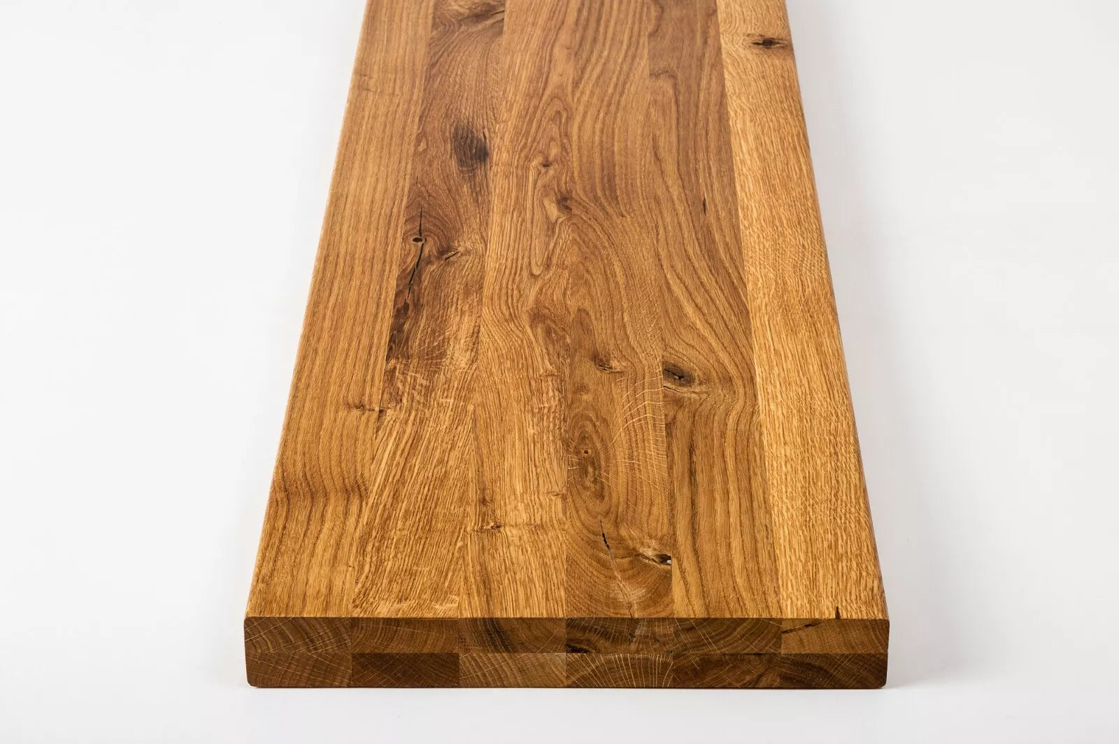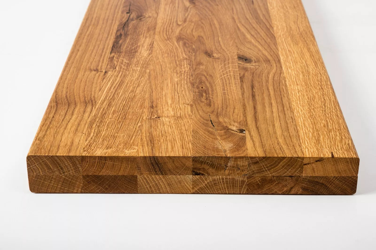 Vyrobeno z vybraného dubu – dostupného ve třídě Prime (A/B) nebo Rustic – každý kus je přirozeně krásný, s čistým, bezsukovým předním povrchem nebo bohatým charakterem dřeva s viditelnými sukami a výrazným kreslením letokruhů. Vyberte si vzhled, který nejlépe vyhovuje vašemu projektu.