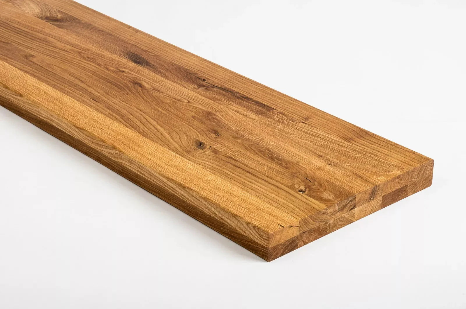 Vyrobeno z prémiového masivního dřeva, tento čistě řezaný produkt bez předního přesahu je všestranným řešením pro širokou škálu aplikací. Ať už se používá jako schodnice, parapet, police nebo dokonce podstupnice, přináší nadčasovou eleganci a pevnost do rezidenčních i komerčních interiérů.