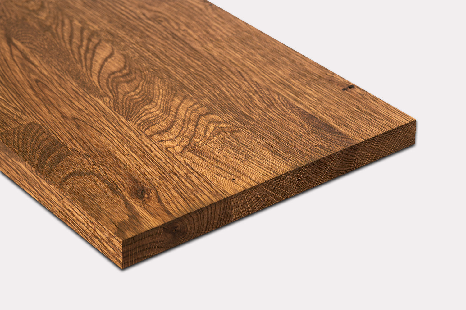 Wykonany z wyselekcjonowanego dębu – dostępnego w klasie Prime (A/B) lub Rustic – każdy element jest naturalnie piękny, oferując albo czystą, wolną od sęków powierzchnię, albo bogaty charakter drewna z widocznymi sękami i wyrazistym usłojeniem. Wybierz wygląd, który najlepiej pasuje do Twojego projektu.