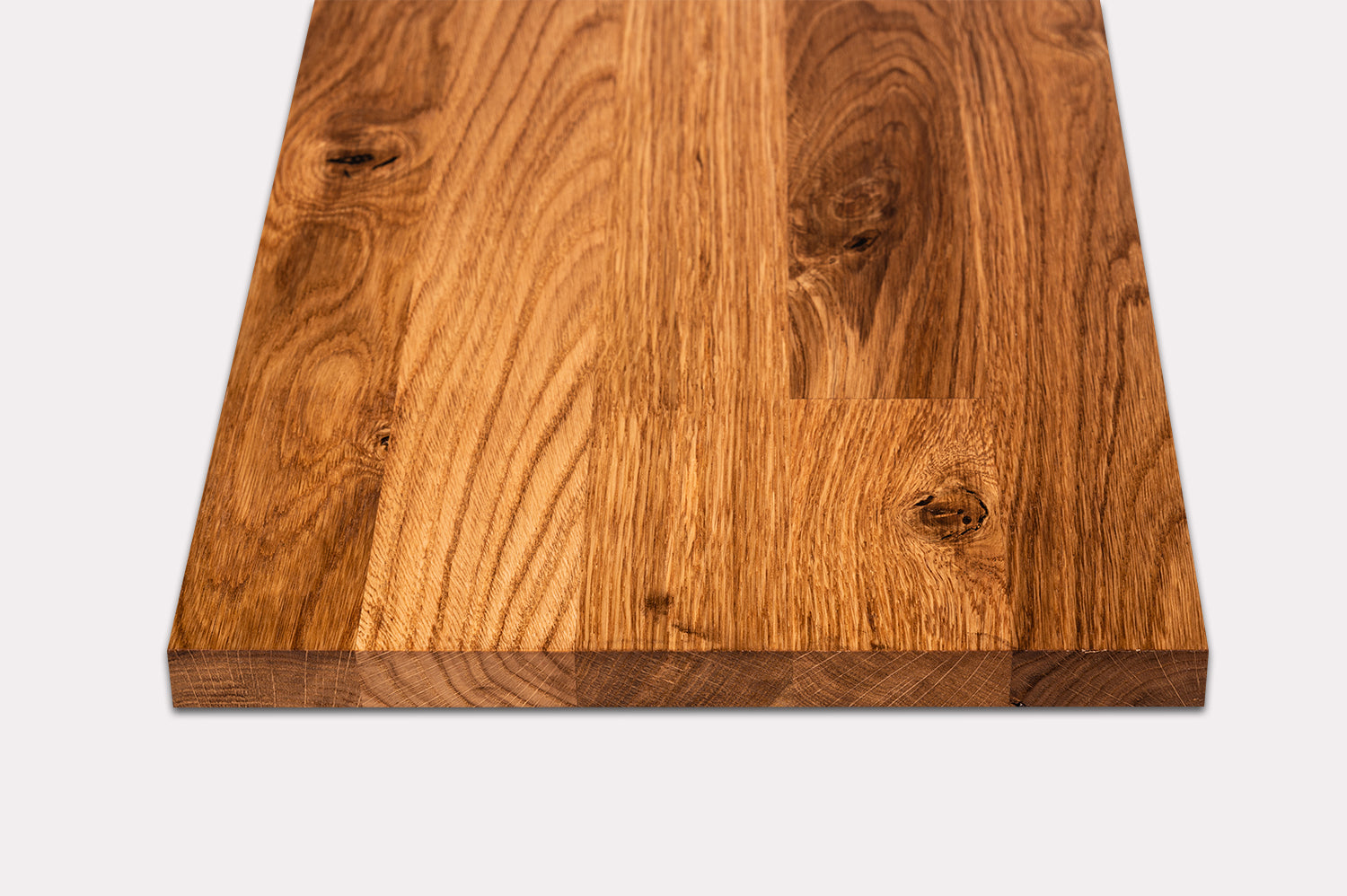 Wykonany z wyselekcjonowanego dębu – dostępnego w klasie Prime (A/B) lub Rustic – każdy element jest naturalnie piękny, oferując albo czystą, wolną od sęków powierzchnię, albo bogaty charakter drewna z widocznymi sękami i wyrazistym usłojeniem. Wybierz wygląd, który najlepiej pasuje do Twojego projektu.