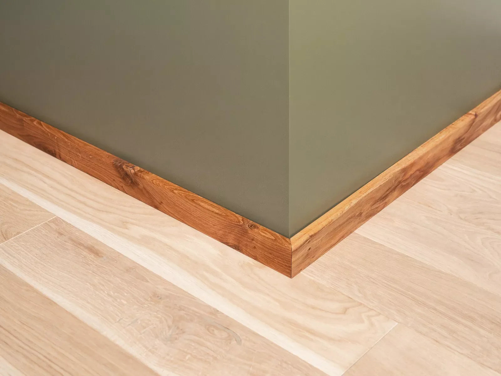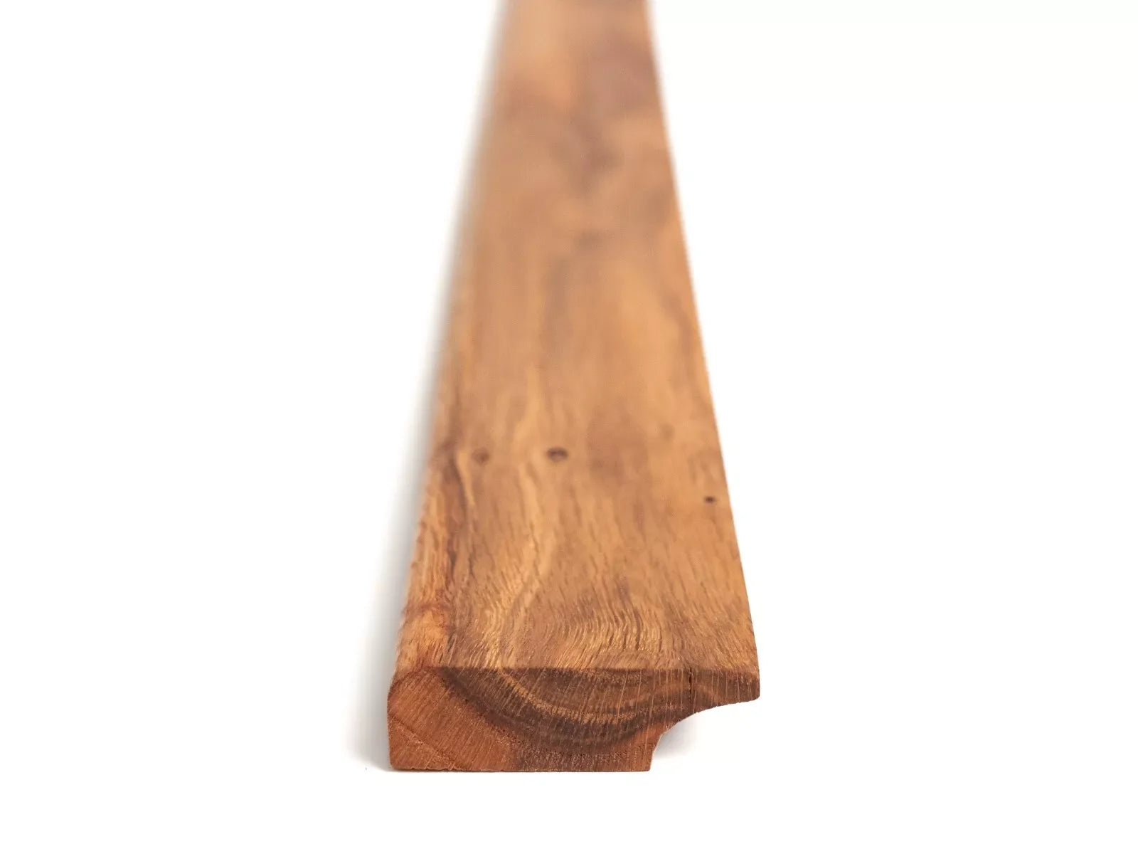 Ta listwa przypodłogowa z litego dębu rustykalnego została starannie wyszlifowana i wykończona naturalnym olejem, który podkreśla głębię kolorów, strukturę słojów oraz charakterystyczne sęki – pozostawione w naturalnej formie, bez wypełnień.