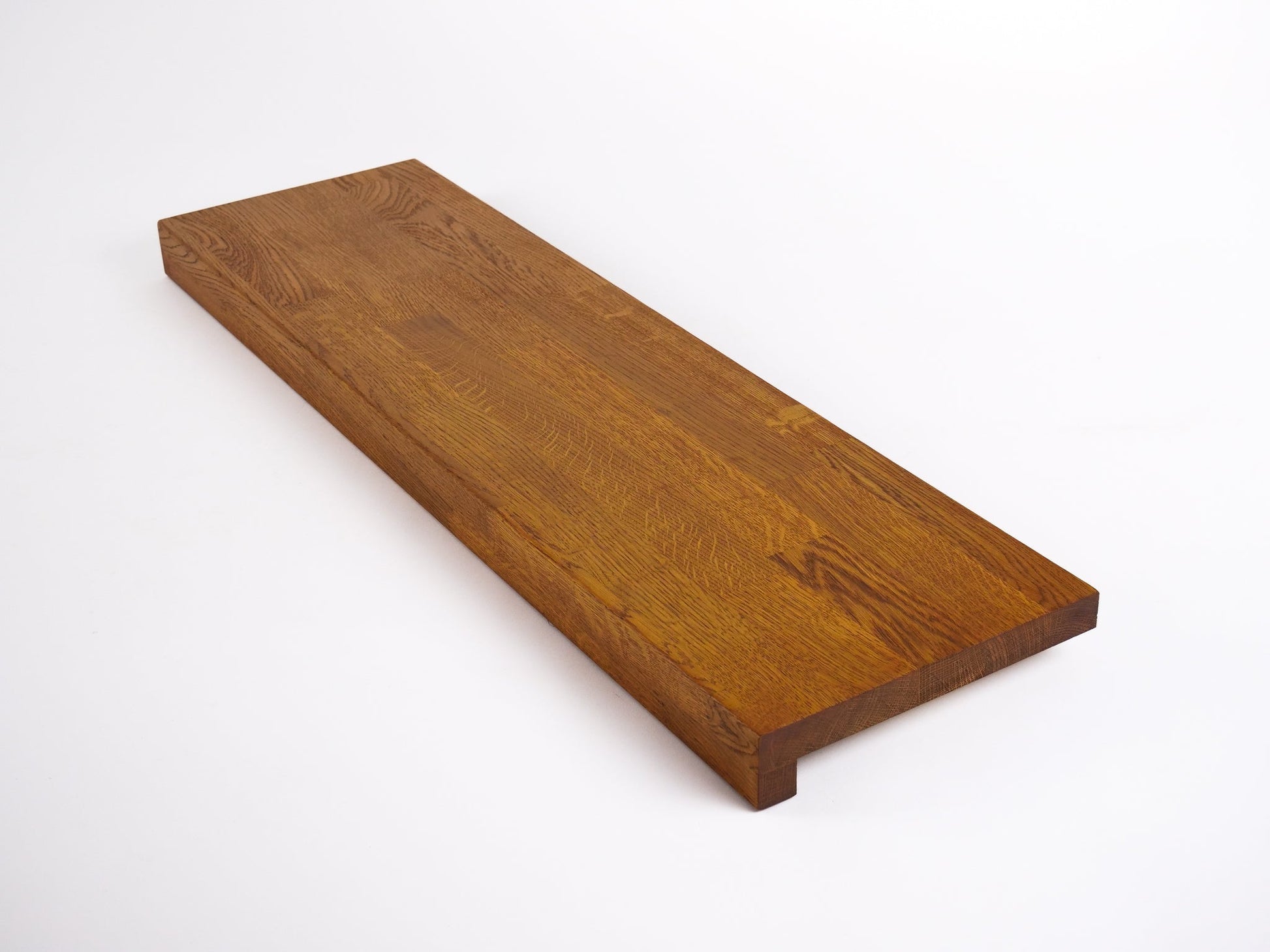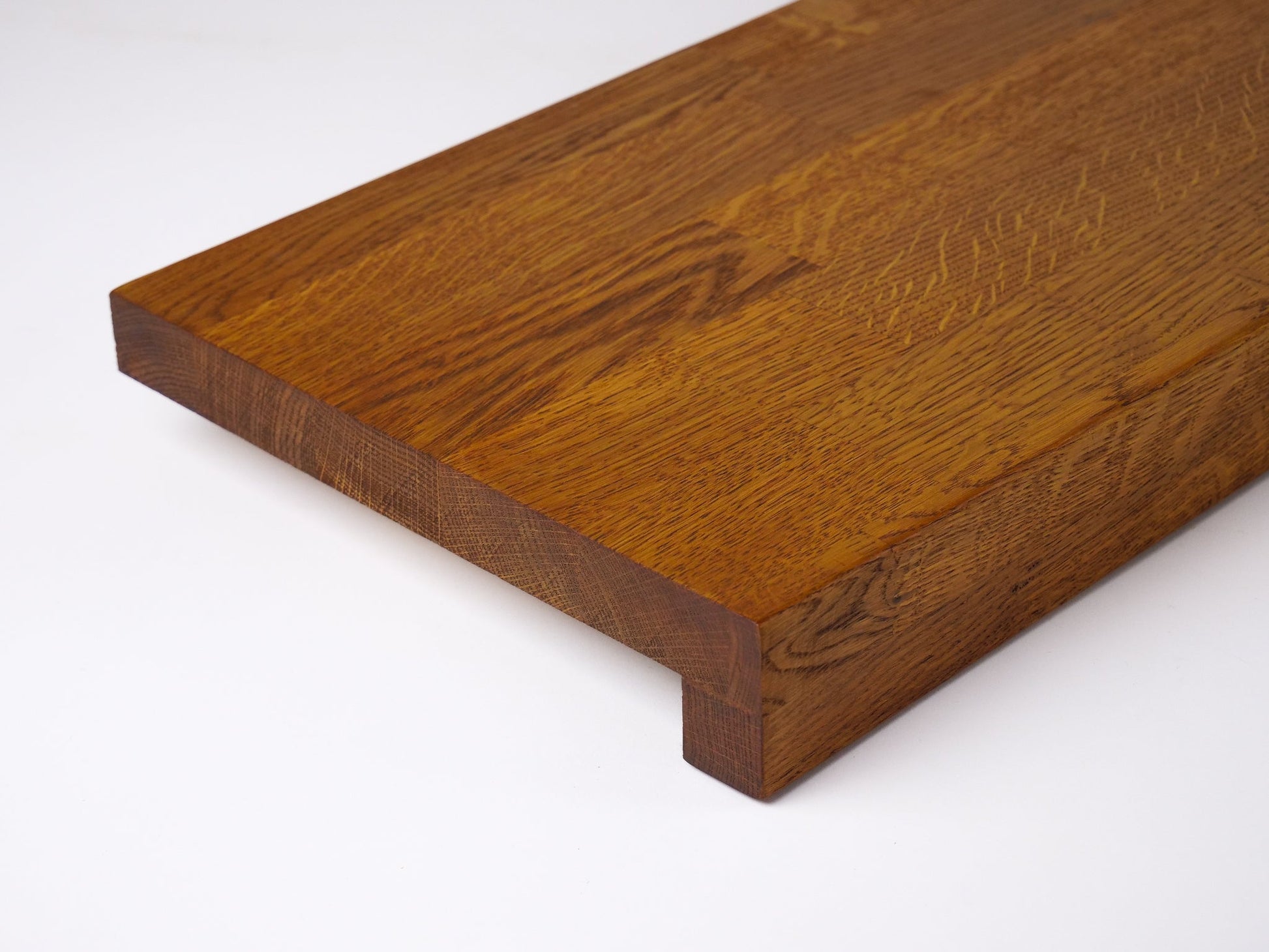 Wykonany z litego dębu w klasie A/B (Prime), ten produkt charakteryzuje się czystą, pozbawioną sęków powierzchnią, która nadaje wnętrzu elegancki i nowoczesny charakter. Starannie wyselekcjonowany front zapewnia jednolite usłojenie i gładką fakturę, idealną do aranżacji, w których liczy się wyrafinowana estetyka. Doskonale sprawdzi się jako stopień schodowy lub parapet, wnosząc do przestrzeni naturalne ciepło i ponadczasowe piękno dębu premium.